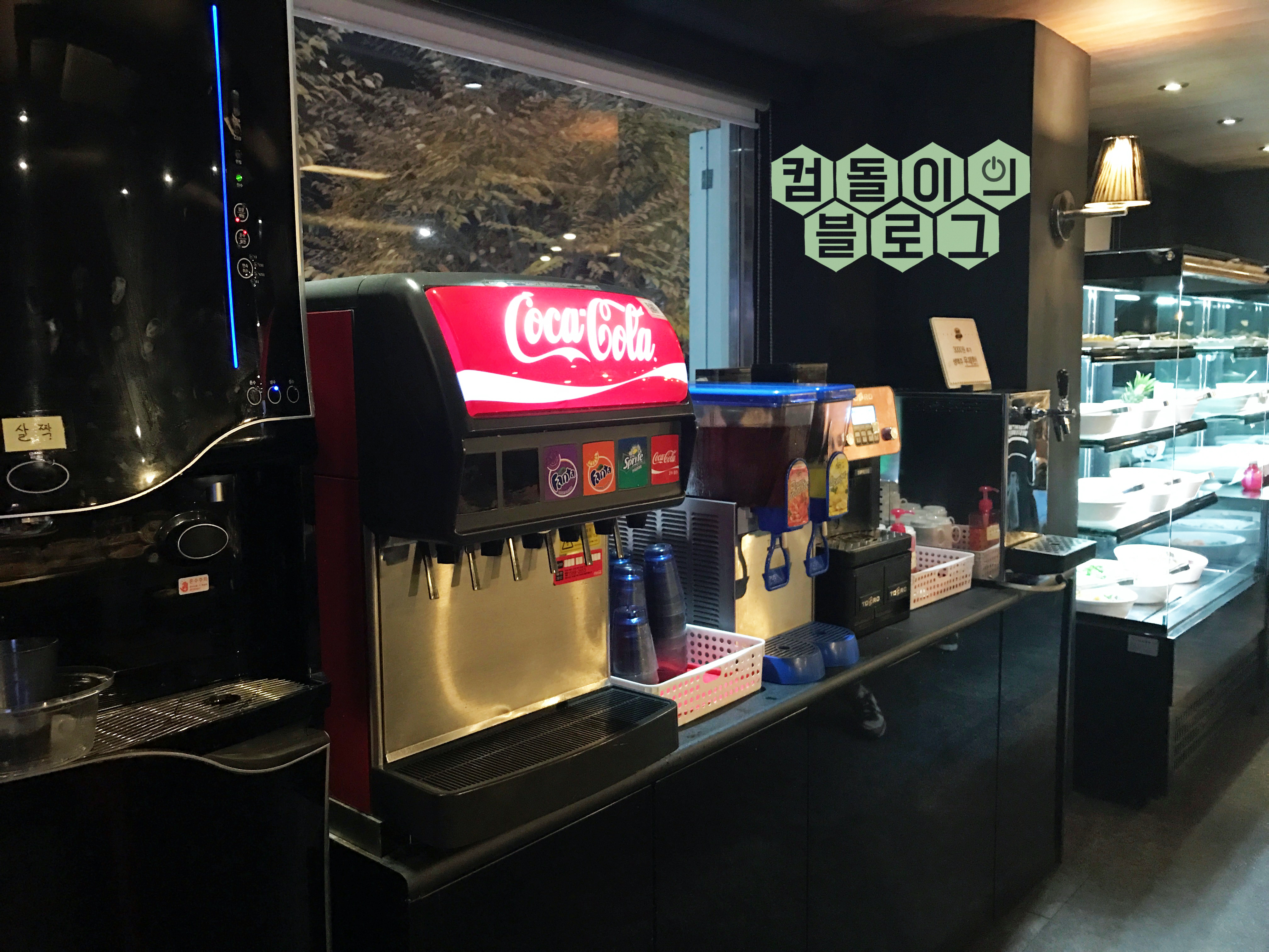 음료를 무한적으로 마실수 있는 음료코너 입니다. 석류, 레몬, 탄산음료가 있습니다.