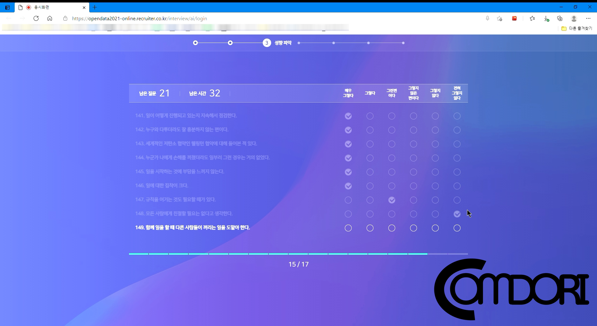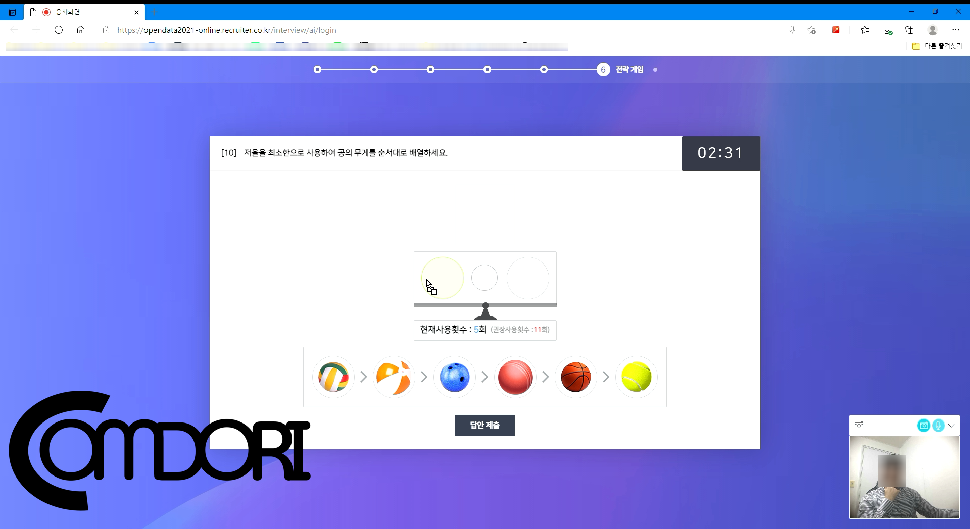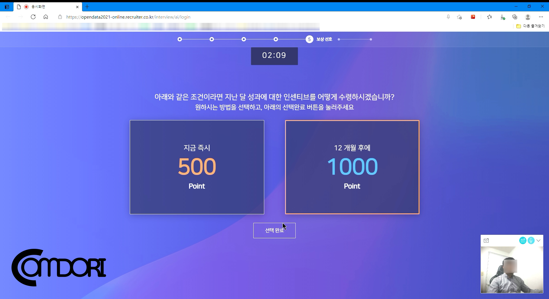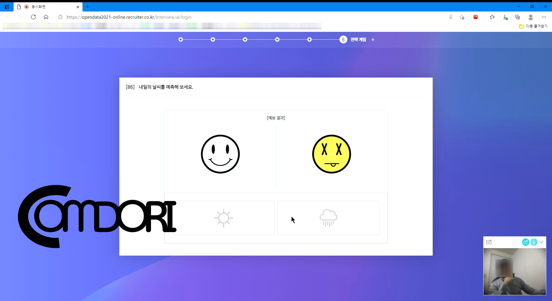 결과는 면접 심사 점수에 반영되지 않지만, 모든 단계를 완료하셔야만 온라인 면접 녹화가