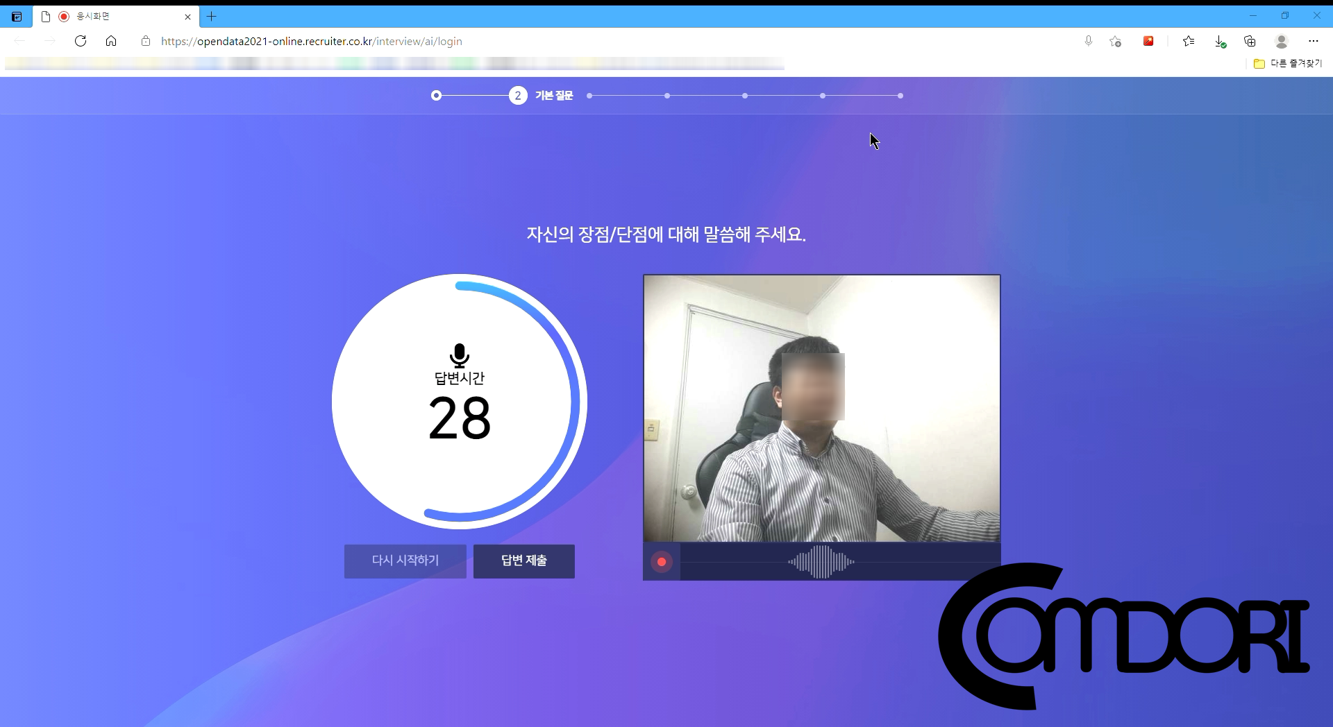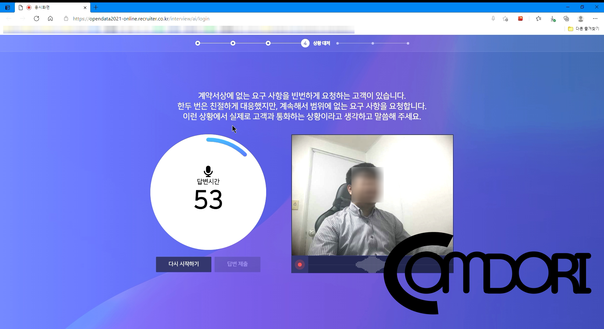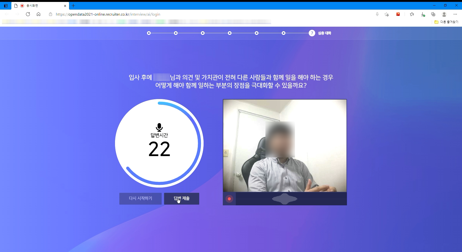 ※ '다시 녹화(답변)하기' 기능은 답변 시작 후 20초 이내에 공통질문당 1회 사용 가능