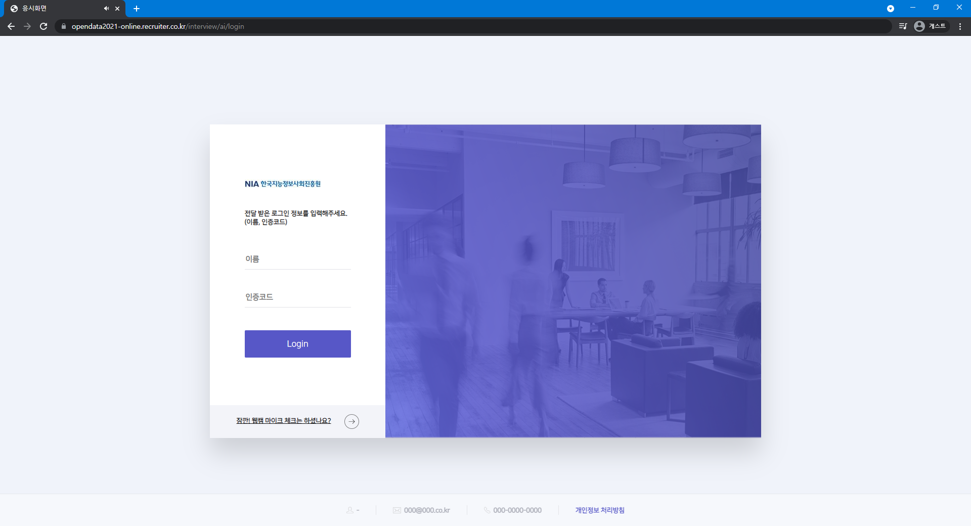 ㅇ 온라인 면접 사이트 : https://opendata2021-online.recruiter.co.kr