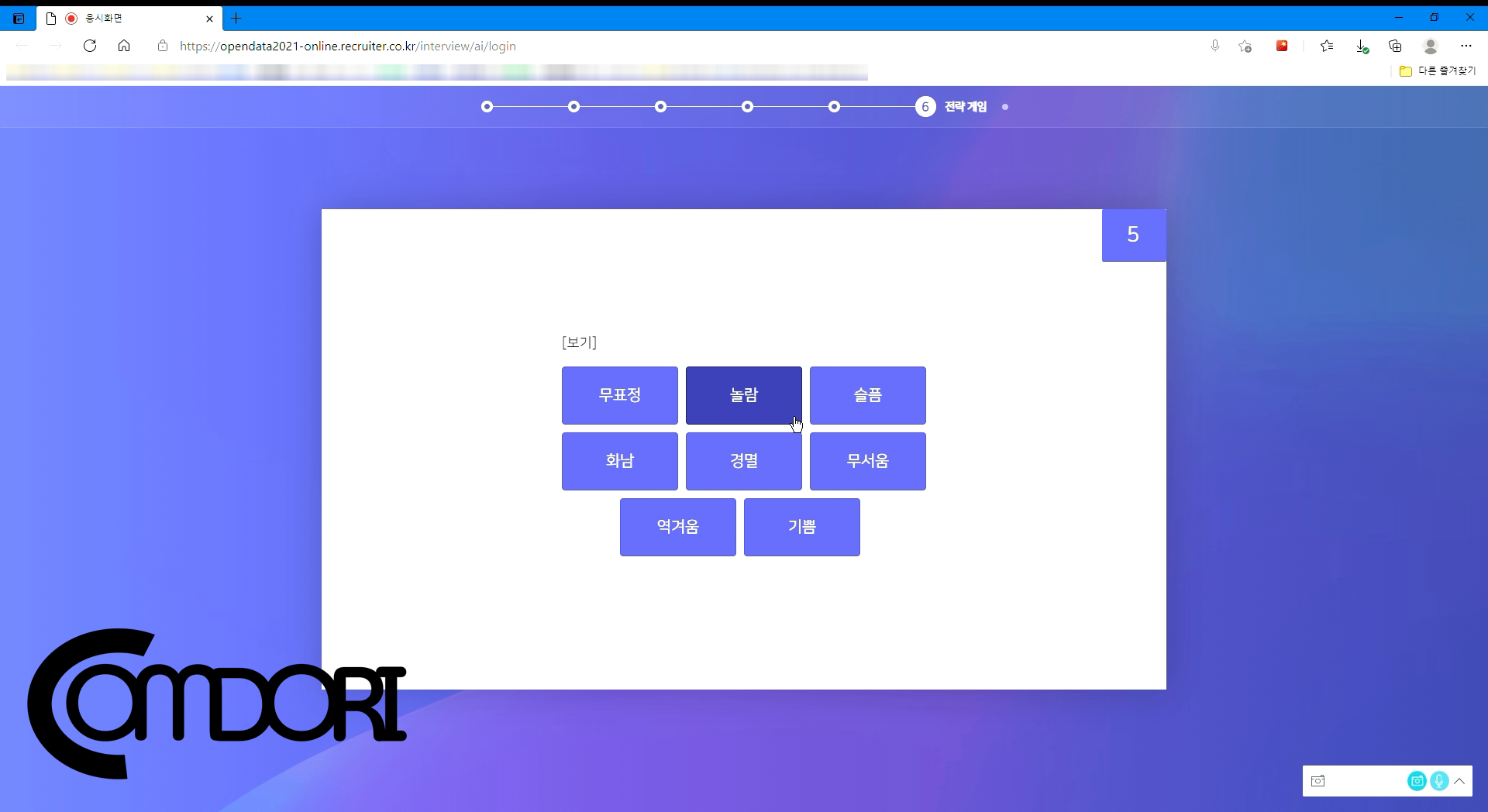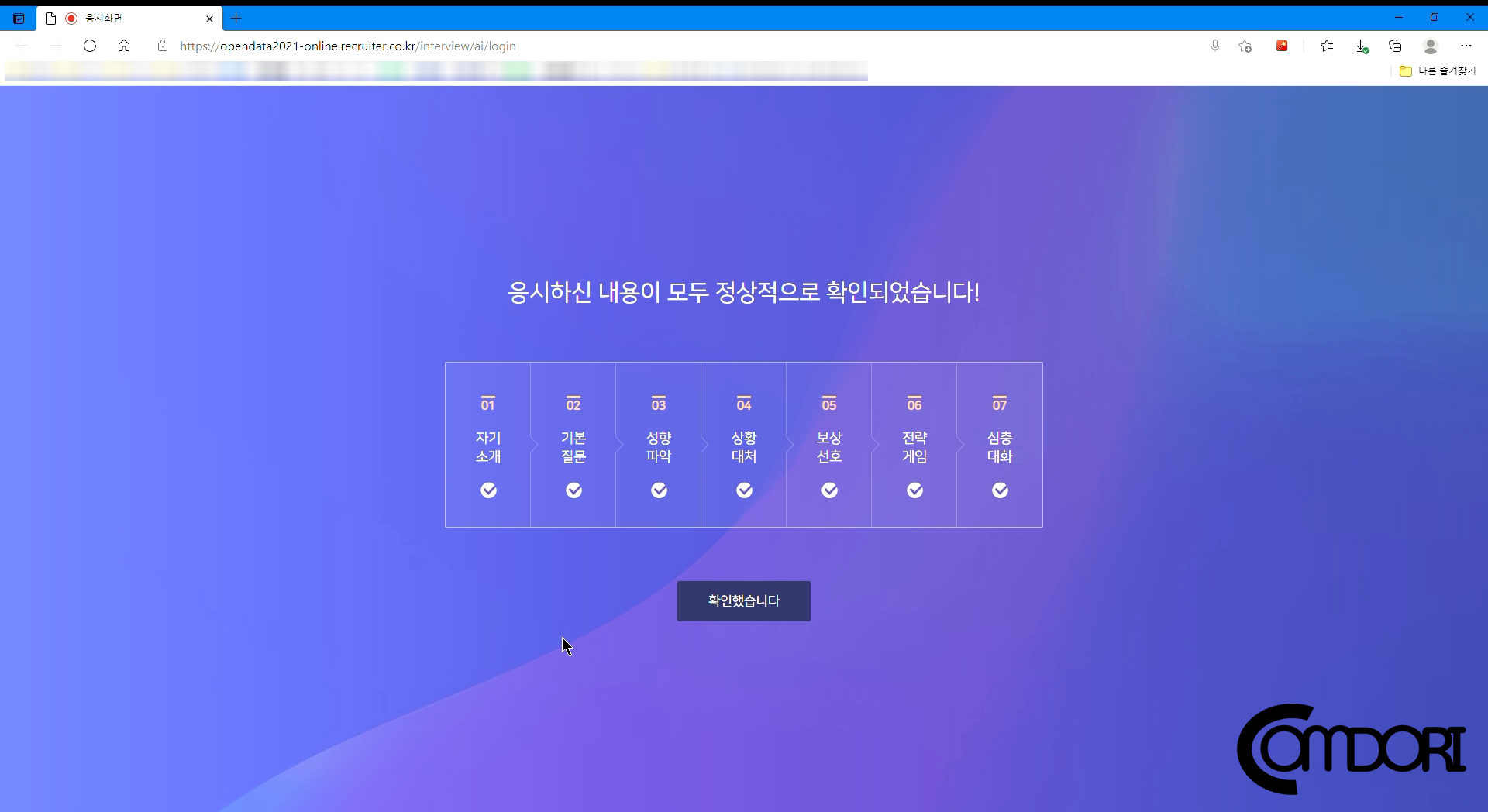 STEP 1) 온라인 면접 응시 사이트 접속 : https://opendata2021-online.recruiter.co.kr