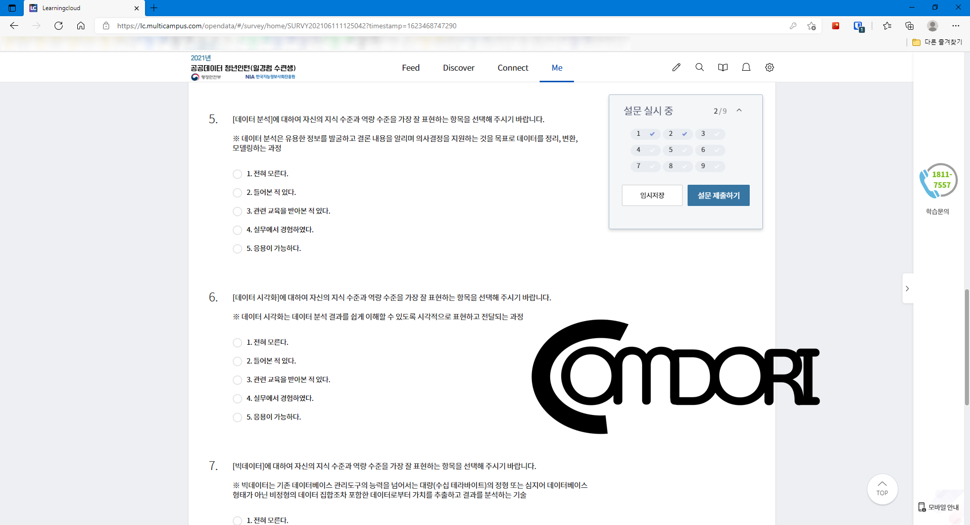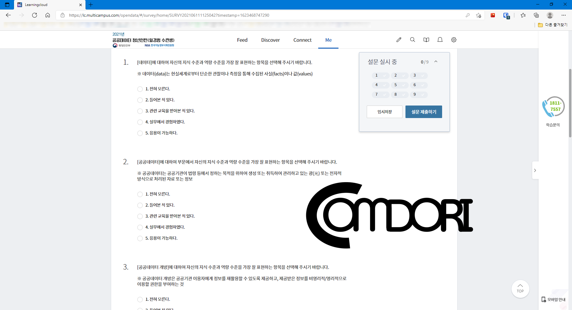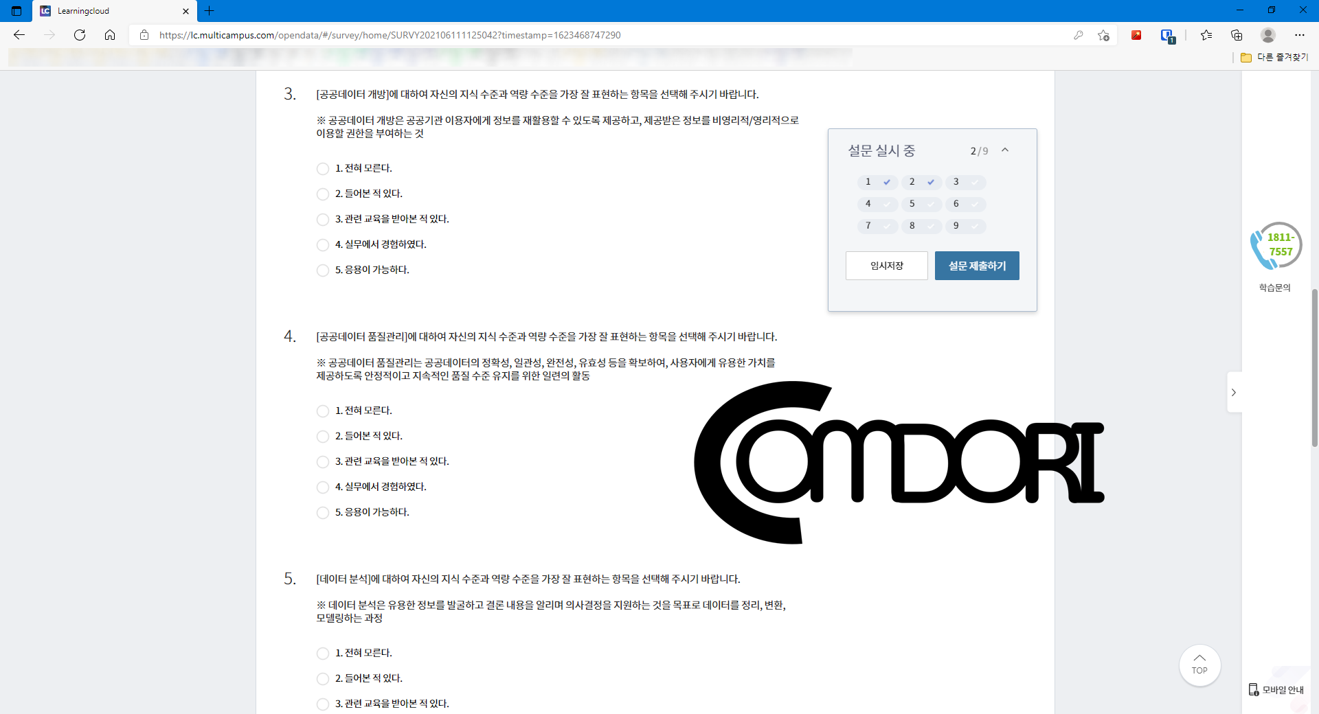 위처럼 9개의 질문에 답을 해주면 학습 성취도 사전진단은 끝나게 된다.