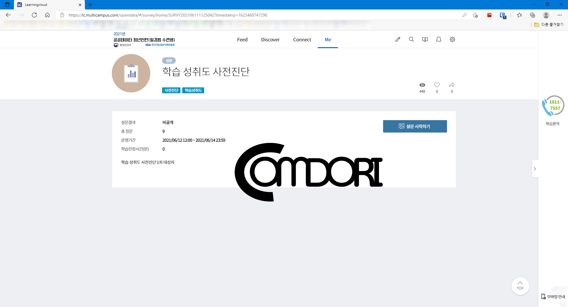 3. Me > 학습목록 > 설문 > 학습 성취도 사전진단을 확인합니다.