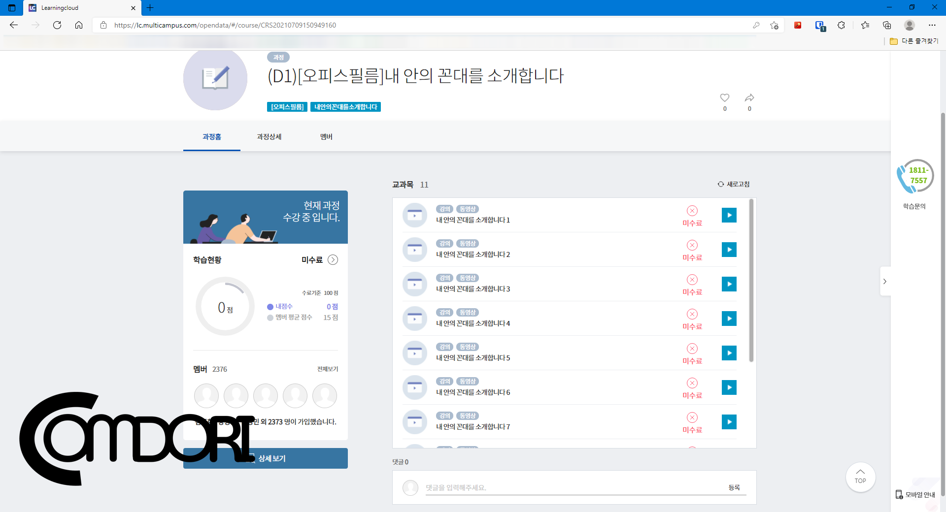 아쉬운점이라면 강의 영상의 품질선택이 없어서 아쉽다. 1080P로 시청하고 싶은데 느낌상 720P 같은 느낌이다..