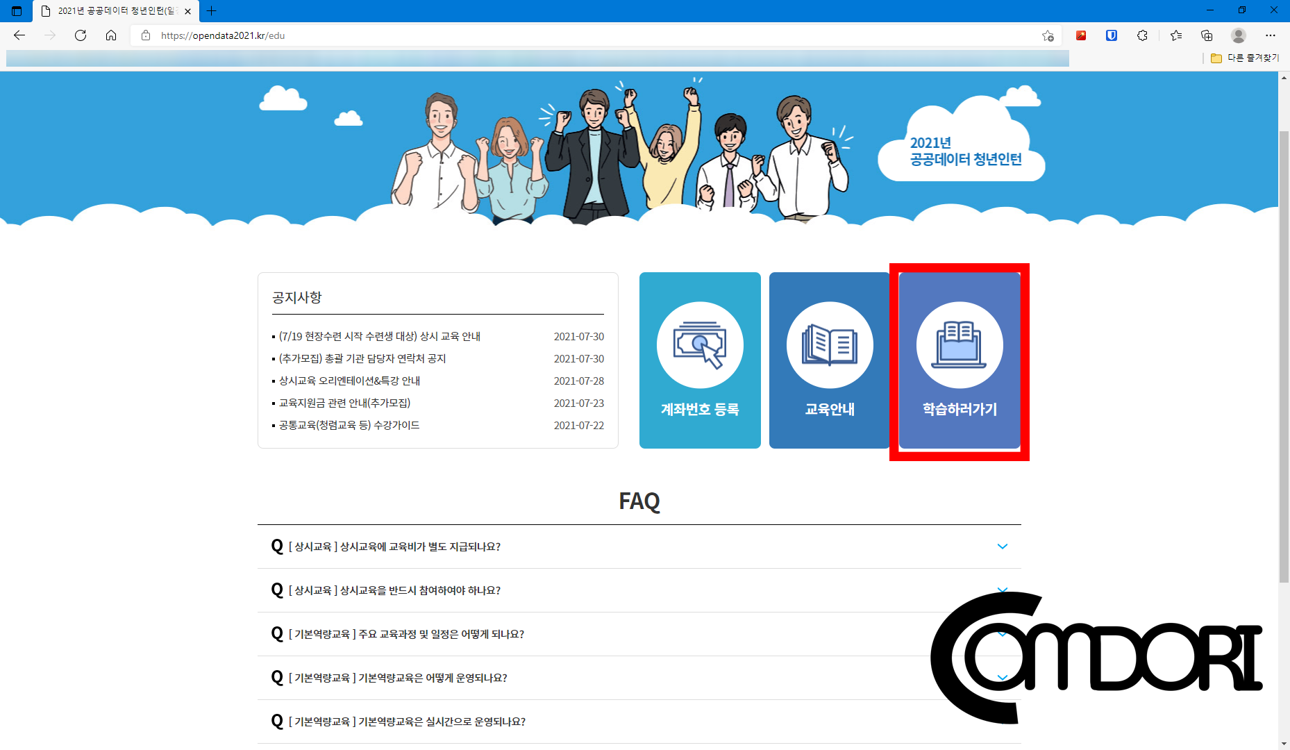 2020 공공데이터 청년 인턴십에서는 없던 과정이라 귀찮은 일이 한 가지 생겼지만 상시 교육을 수료하면 수료 지원금을 지급하니 지원금 주는 것에 만족? 하며 들어보자.