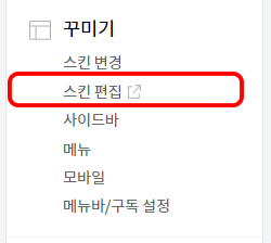 1. 블로그 설정에서 꾸미기-스킨 편집으로 갑니다.