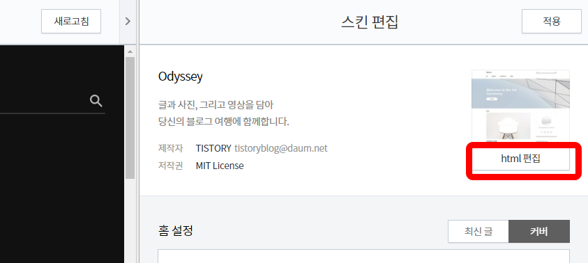 2. 오른쪽 스킨 편집에서 html 편집을 클릭합니다.