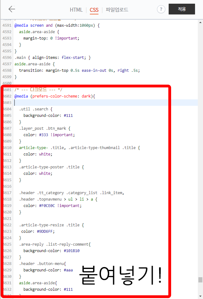 티스토리 다크모드 적용 상세 - Book Club 테마 기준