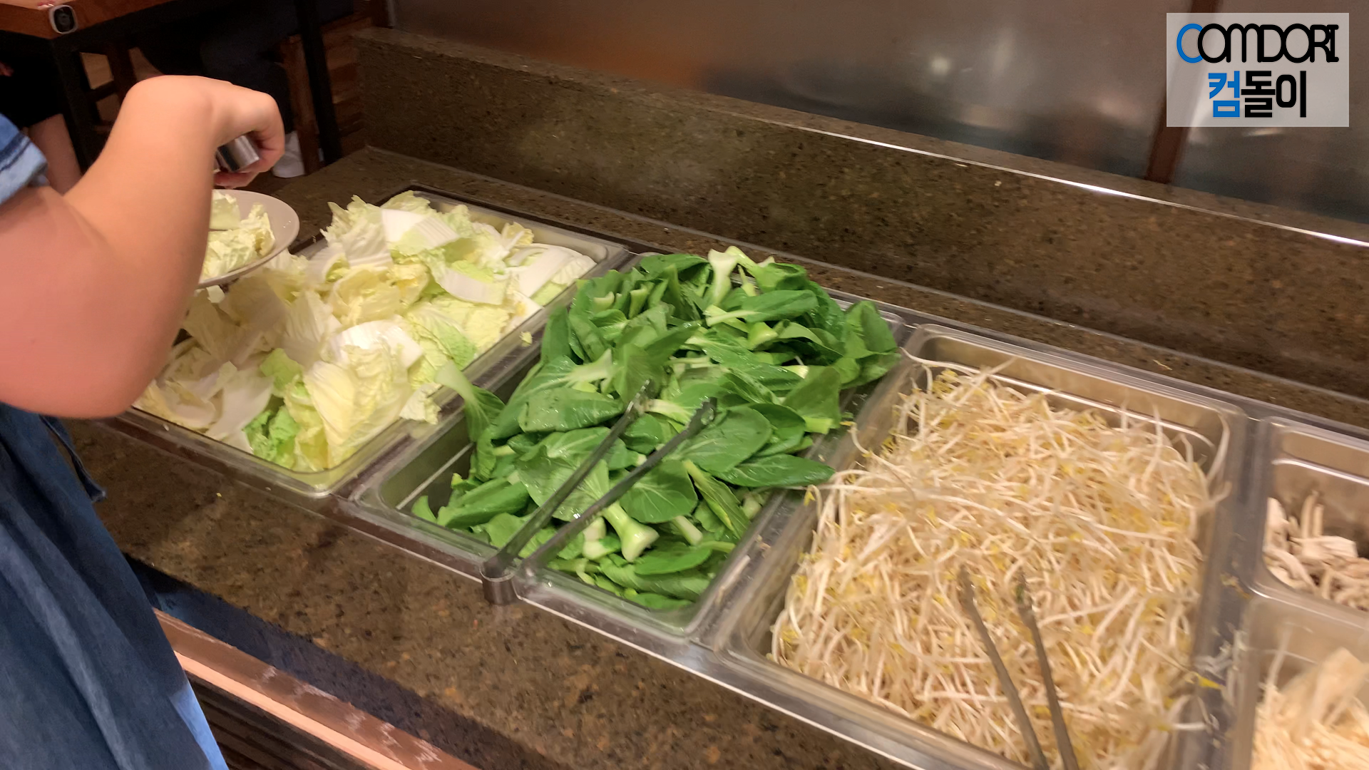 숙주나물, 청경채, 배추 등이 있다. 사진에는 없지만 육수또한 리필가능하다.