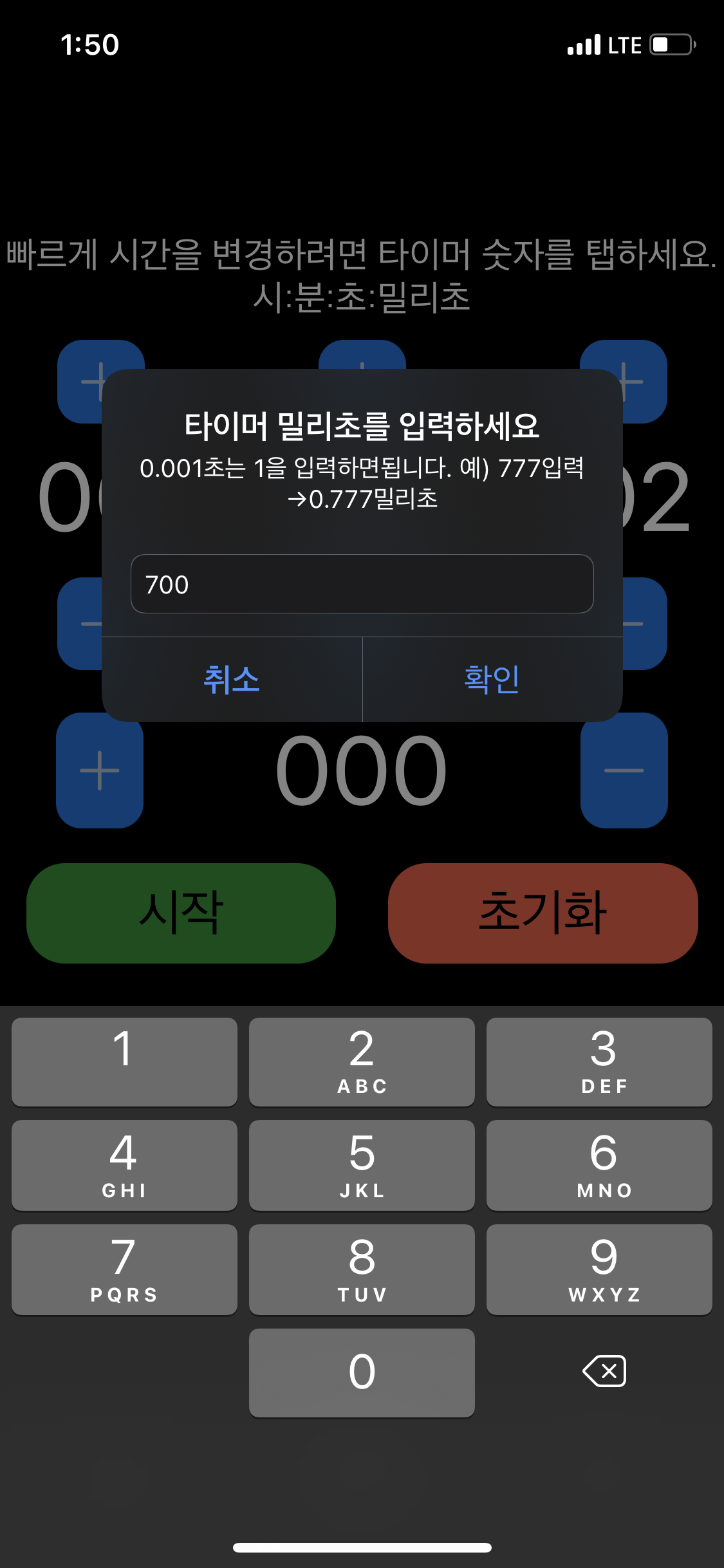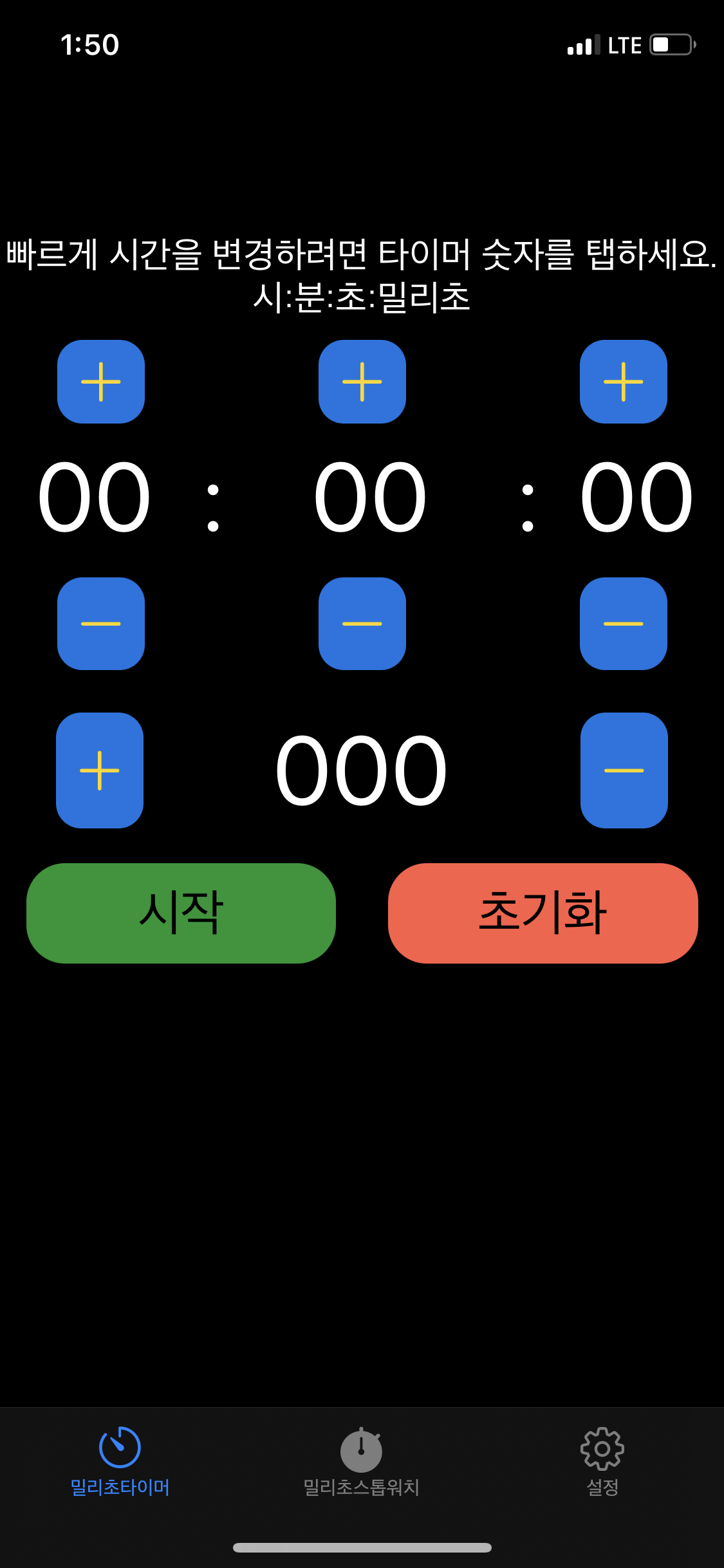 밀리초타이머 앱에서는 밀리초 표시로 더욱더 정확한 카운트 다운을 할 수 있습니다!