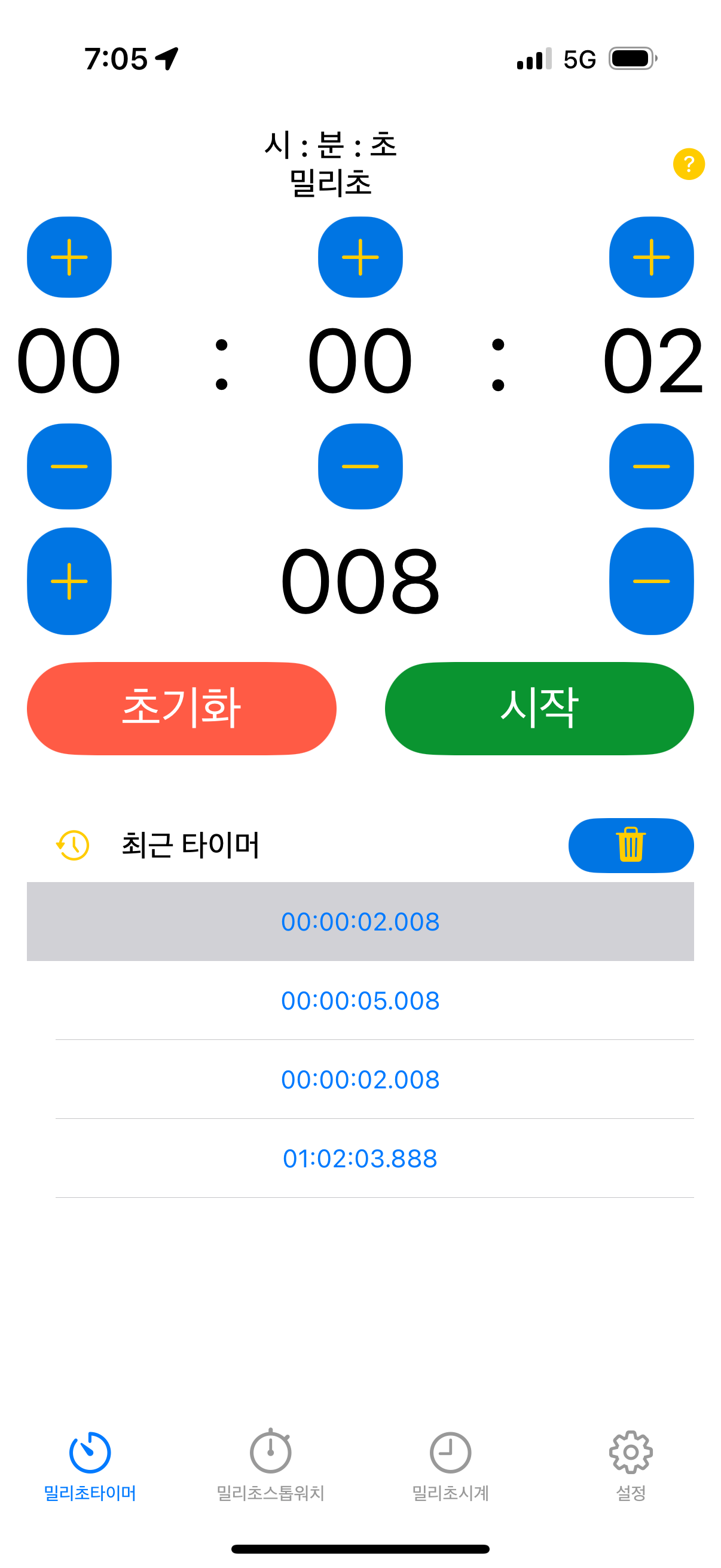 - 시, 분, 초, 밀리초로 타이머를 이용할 수 있습니다.