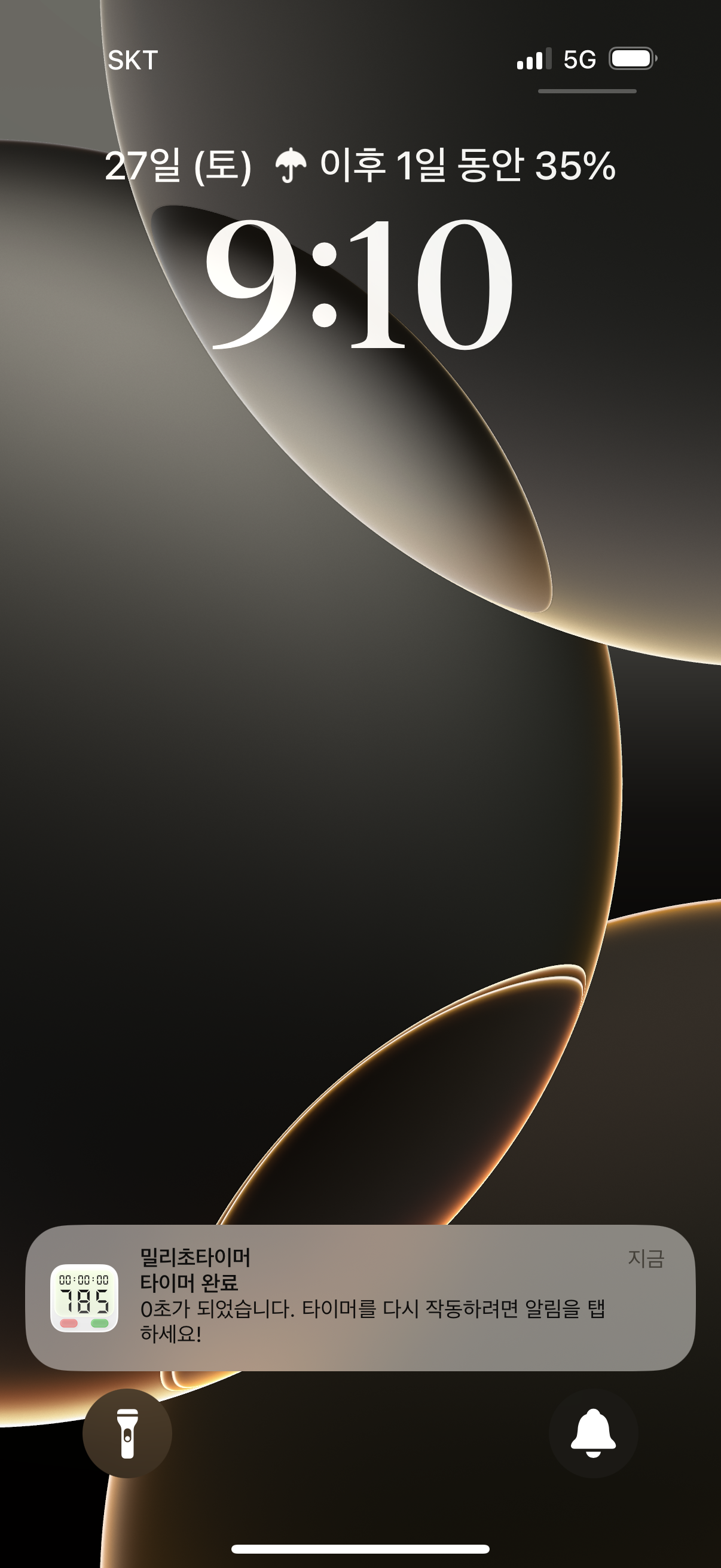 - 타이머가 끝나면 다른 앱을 켜놓은 상태(백그라운드) 또는 잠금화면에서 알려줘요!