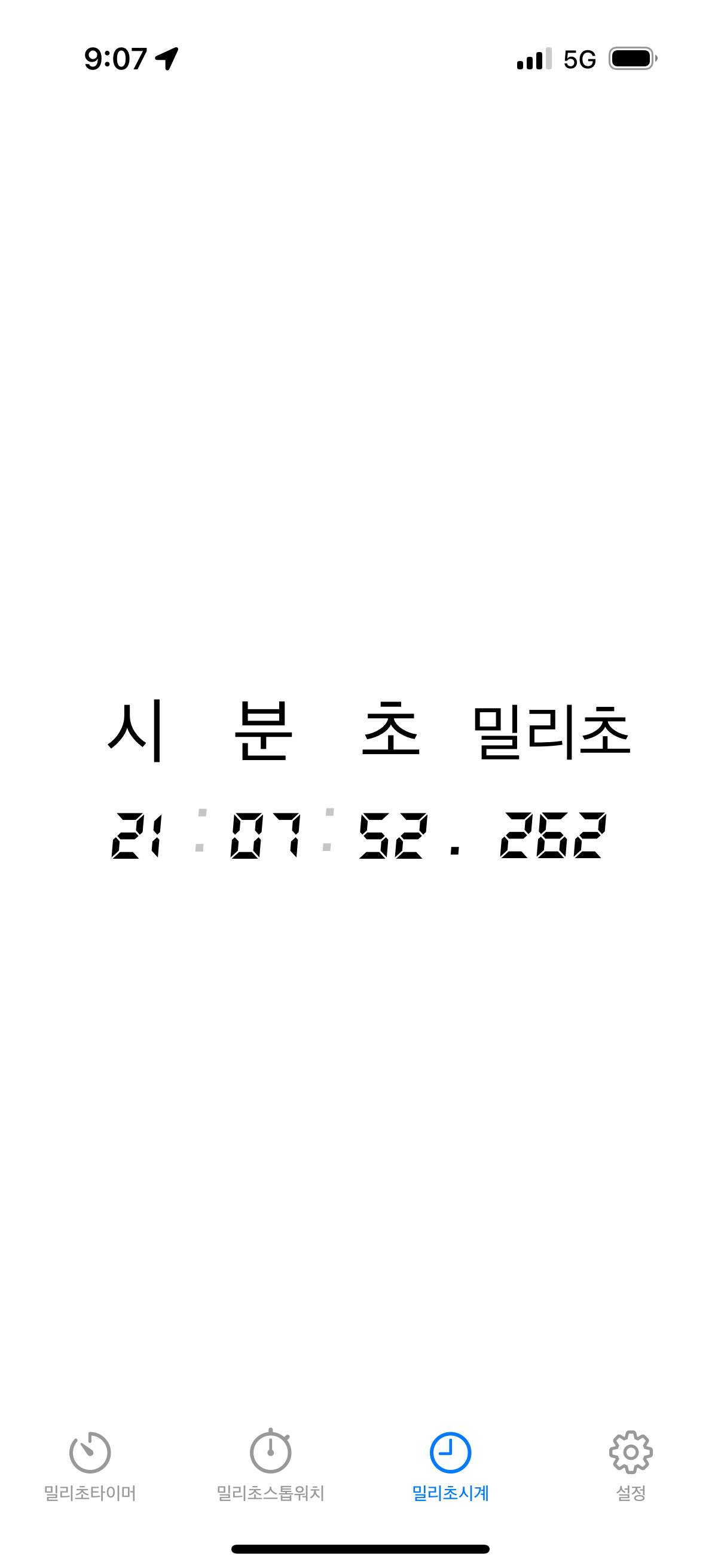 여전히 밀리초타이머 앱에서는 밀리초 표시로 더욱더 정확한 카운트 다운을 할 수 있습니다!