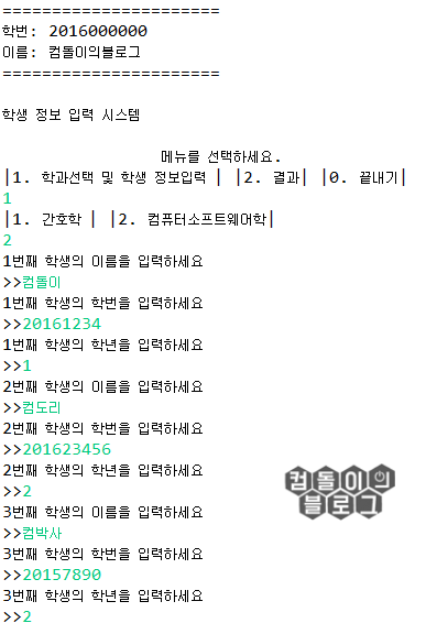 if ("1".equals(Major)) { //간호학과 학생 정보를 입력 받음.