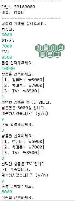 Y 을 누르면 프로그램 계속 한다.
