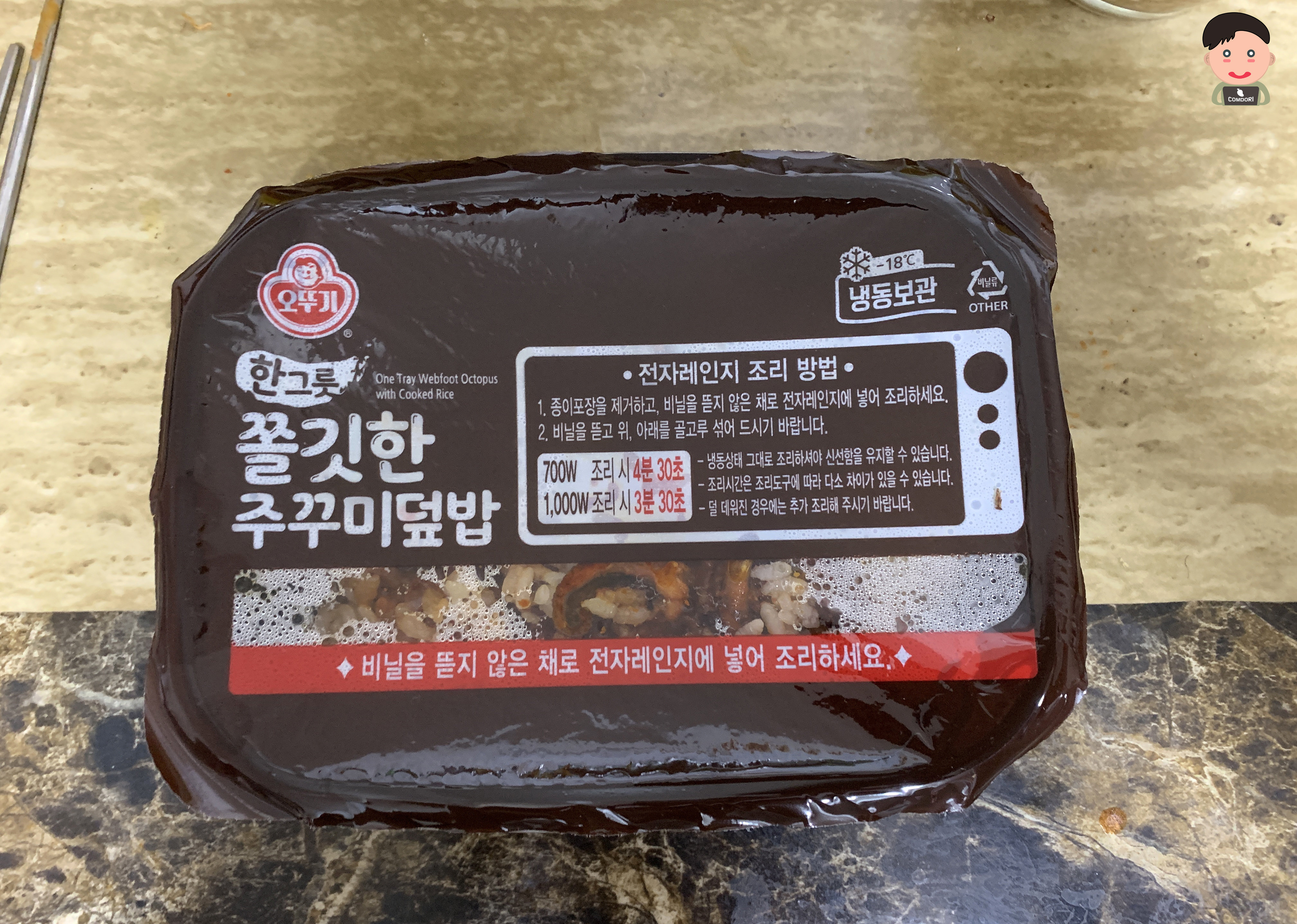 비닐뜯지 않고 바로 700W 전자레인지는 4분 30초 / 1000W 전자레인지는 3분 30초 입니다.