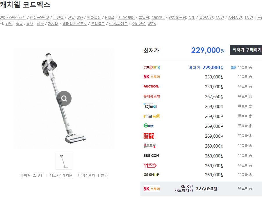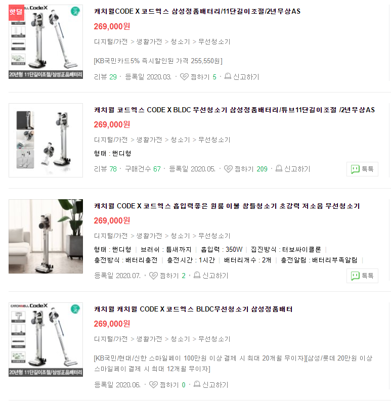 집에서 사용하던 캐치웰 cv6 가 고장이 나서 캐치웰 고객센터에 A/S를 문의하였더니 제품을 수리하는 비용보다 자사의 제품을 새로 구매하거나 다른 제품을 구매하는 것이 좋다고 하여 무선청소기를 찾아본 결과 LG의 코드 제로A9S를 구매하고 싶었으나 청소기가 90만 원 이상하길래... 이 금액이면