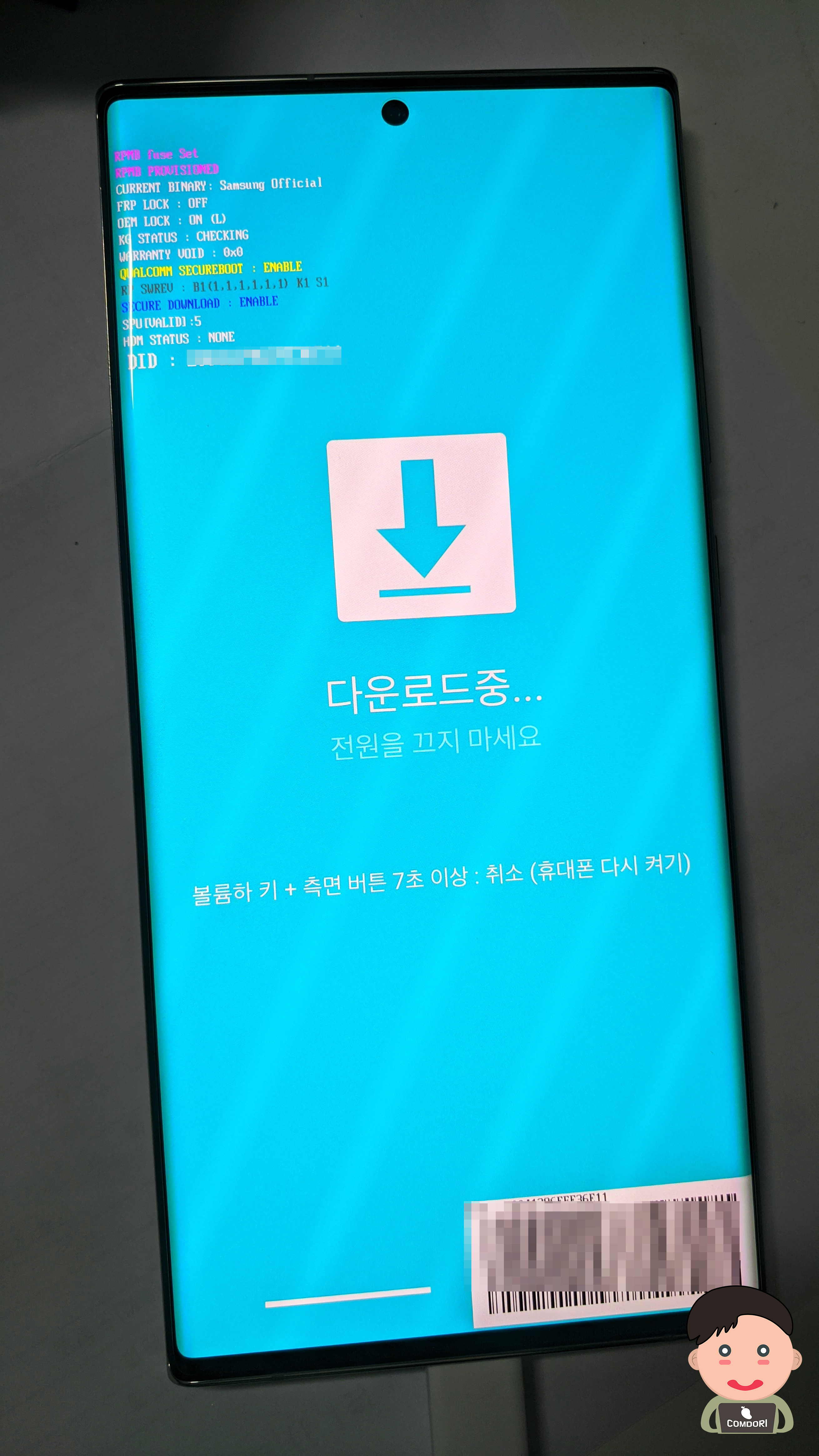 오지 폰이라 부트 이미지가 SKT 5GX라고 나타난다.