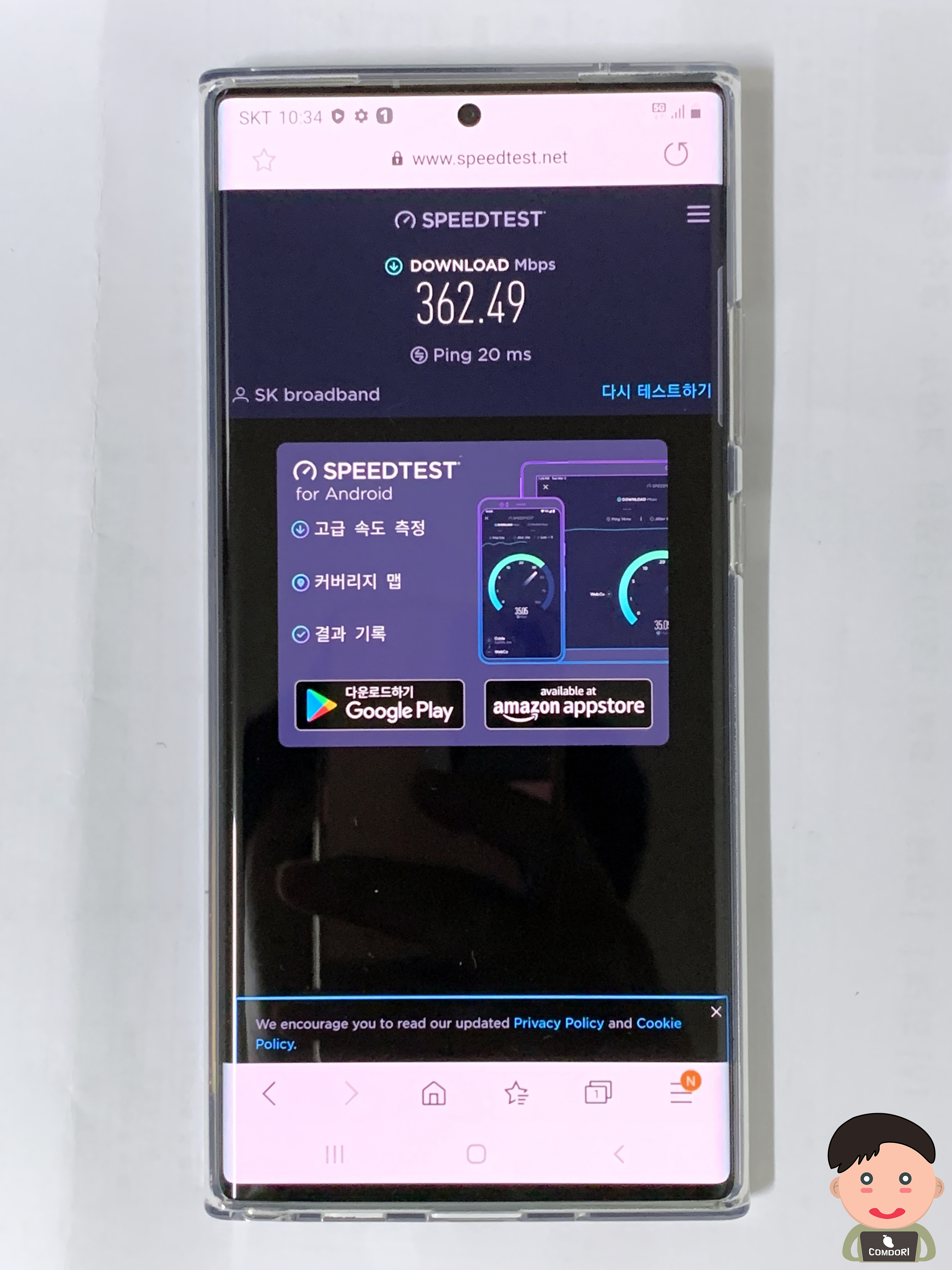 두 번째 테스트 속도는 362 Mbps가 나왔는데 뭐 체감상으로 못 느낄 것이다. 어차피 네이버 홈 화면 1초 만에 뜨기 때문에...