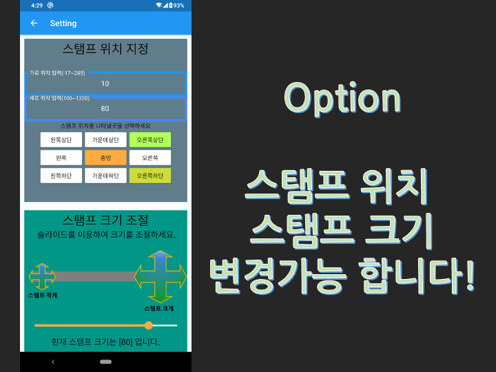 2. 스탬프 위치를 자신이 원하는 위치에 넣을 수 있습니다.